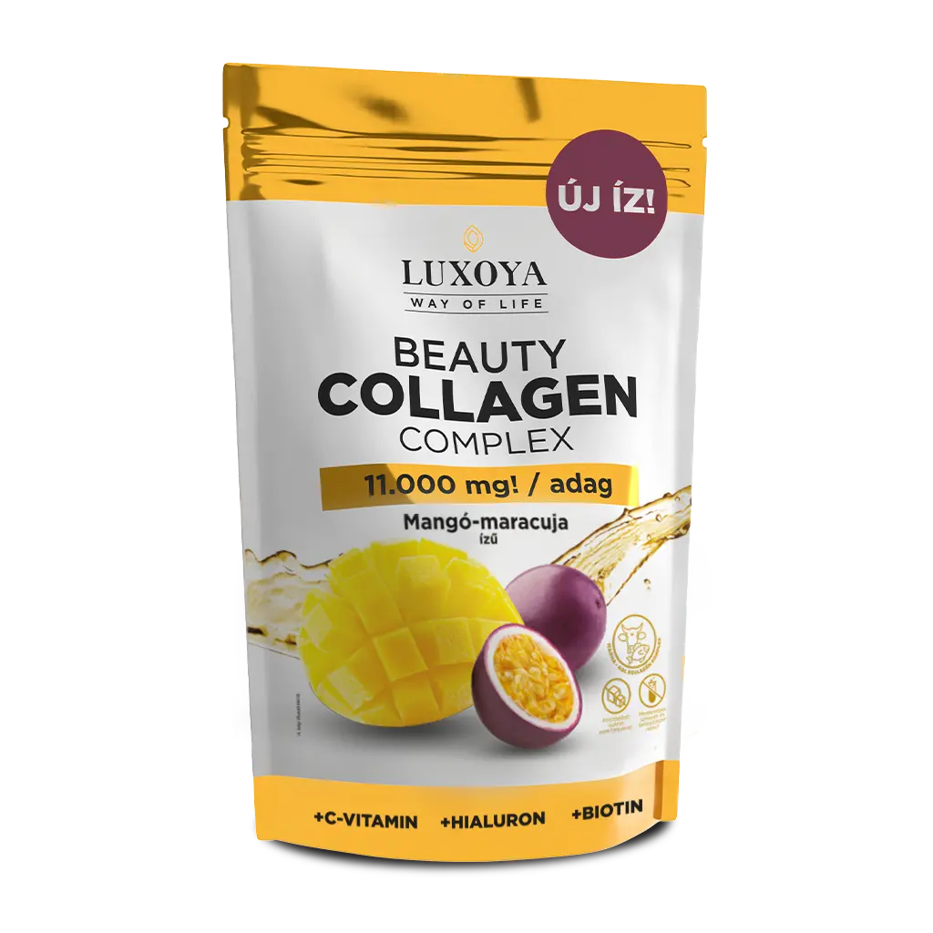 A bőr öregedésének egyik fő oka a kollagén csökkenése, amely a bőr szerkezetének alapját képezi. A Beauty Collagen Complex a kollagénpótlás terén nyújt segítséget, hiszen 300 grammos kiszerelésben kínál hatékony kollagén komplexet, amely hozzájárul a bőr, a haj és a körmök egészségének megőrzéséhez. Az ízvilágában a trópusi mango és maracuja frissessége dominál, így a napi kollagénbevitel nemcsak hasznos, hanem élvezetes is lesz. Ez különösen fontos, hiszen a rendszeres fogyasztás eredményei csak hosszabb távon, kitartó használat mellett mutatkoznak meg.