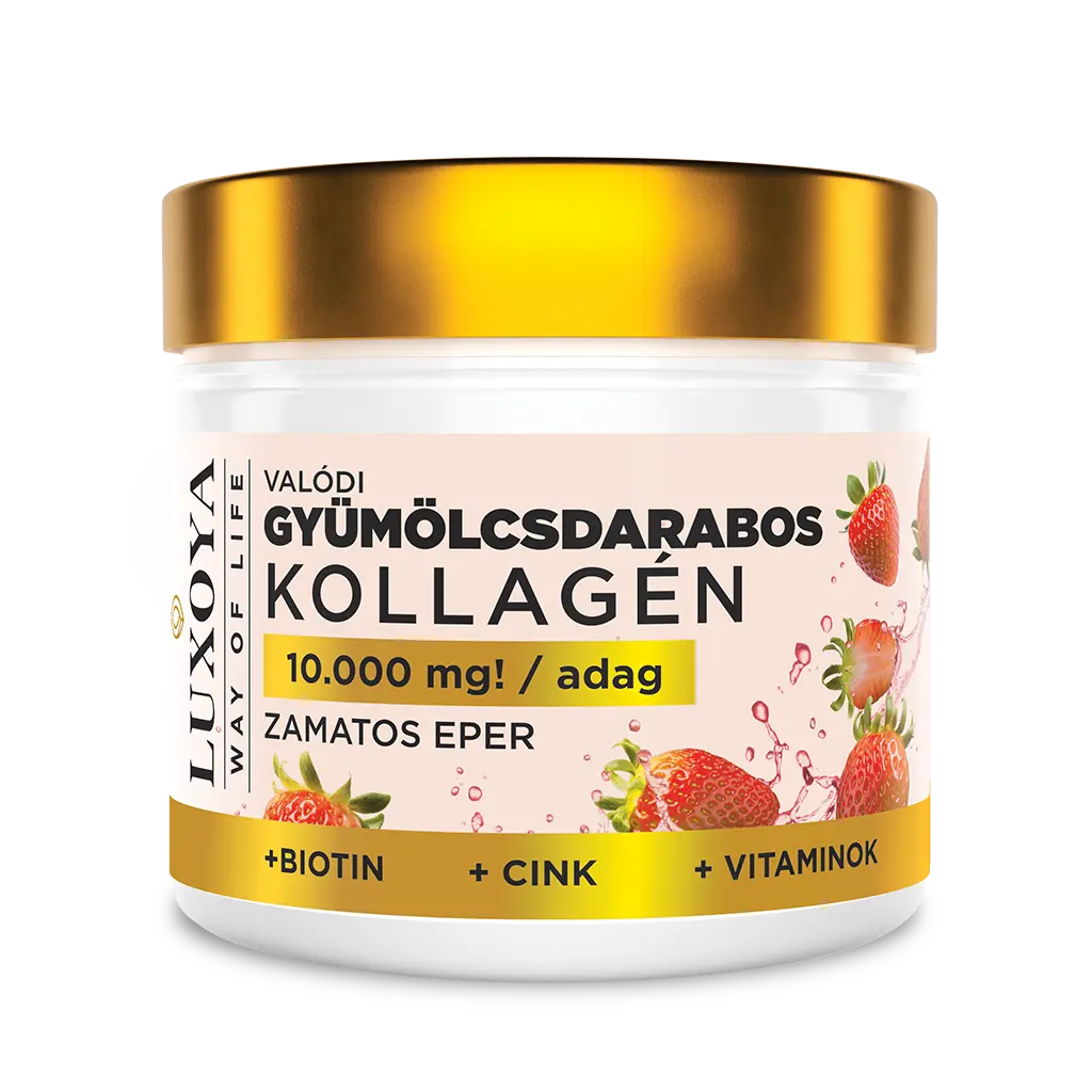 A kollagén a szervezetünk egyik legfontosabb fehérjéje, amely a bőr rugalmasságáért, az ízületek mozgékonyságáért és a kötőszövetek erősségéért felel. Az életkor előrehaladtával azonban a kollagéntermelés csökken, ami ráncok, bőrmegereszkedés és ízületi problémák formájában jelentkezhet. Itt jön képbe ez a termék, amely a kollagén természetes pótlásával segít megőrizni a bőr feszességét és vitalitását. De miért számít, hogy gyümölcsdarabokkal van gazdagítva? Az eperdarabok nemcsak természetes ízt kölcsönöznek a készítménynek, hanem antioxidáns-tartalmuk révén támogatják a sejtek megújulását és a szervezet védekezőképességét is.